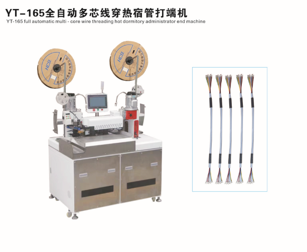 全自動雙頭穿護套端子機、全自動雙頭穿熱縮管端子機、全自動銅帶壓接端子機、全自動雙頭端子機、全自動排線端子機、全自動沾錫打端機、全自動打端插殼機、新能源全自動雙頭穿熱縮管散粒端子機、新能源全自動雙壓單穿激光打號碼管端子機、新能源大平方穿號碼管端子機。